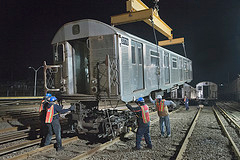 Rockaway is still devastated. People who live there have to get to work and the MTA trucked subway cars in on flatbeds to act as shuttle trains. Here's more information and some great photos.