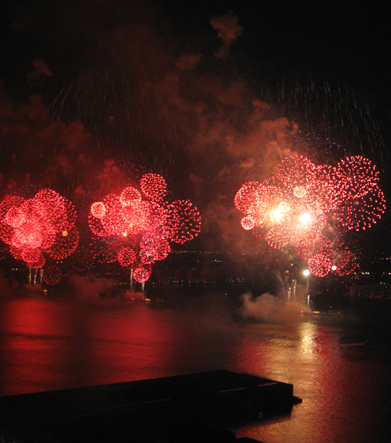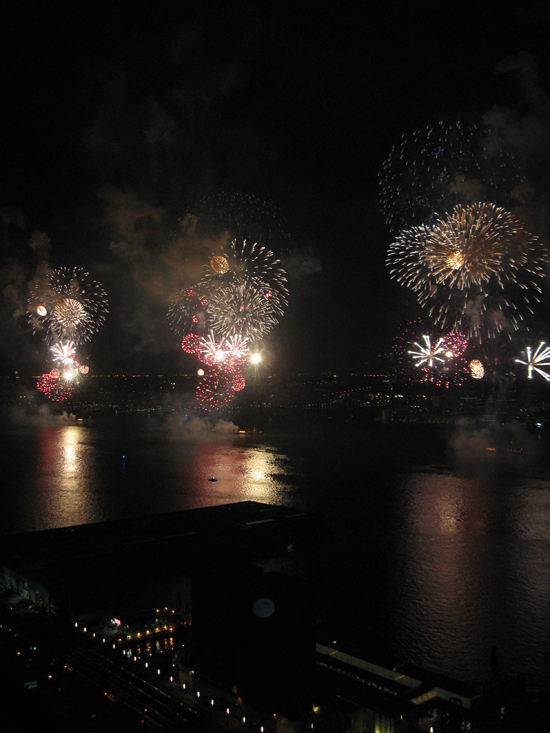 My auntie lives in a midtown highrise, on a high floor that overlooks the Hudson and lower Manhattan. She works in the theater and whenever there are fireworks Joe and I watch them with her and a few of her great theater friends. We cook, my aunt cooks and I try to bring Brownies Cockaigne from the Joy of Cooking: