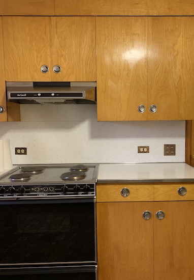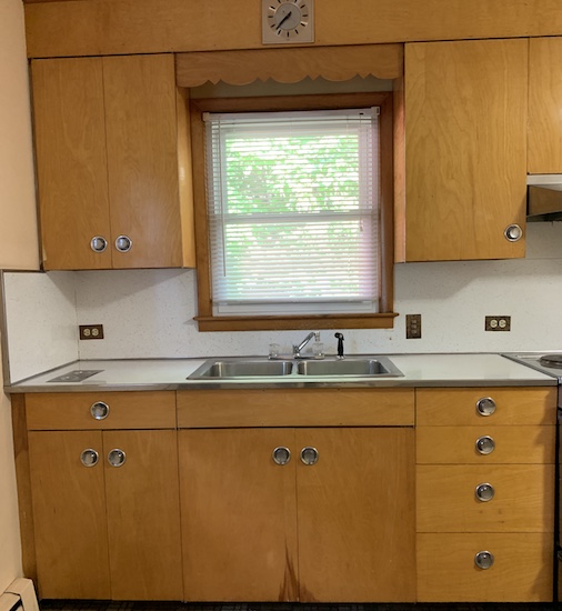 The photos are of the kitchen cabinets. They’re a little wonky and need shoring up, but for now, they’re kind of perfect.