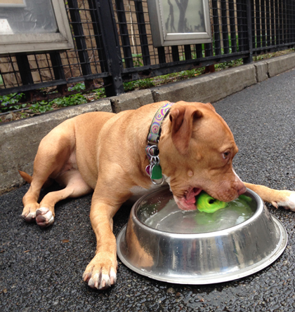 All the trucks and beeps and general cacophony of living in a construction pit has put Ginger on edge. She only wants to go out at three in the morning and that's when Joe takes her to the dog run. I take her to the river or for a long walk at six a.m., and once the sun is fully up and construction has kicked in she won't leave our patch of sidewalk. We're barely sleeping, but we're hoping things start to change once all the demolishing is finished. It's wishful thinking, but it's what I'm telling myself right now. The construction guys and occasional construction gal love her, so she's happy as can be.
